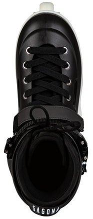 The Sway Sagona All-Star honors a true legend - Dominic Sagona. Arguably the first skater with a “ninja” style, the skate is stylish, durable, and innovative - just like Dominic. The new Sway boot has been updated to improve control and performance while the newly designed soul plate will have you grinding on virtually anything. The boot comes complete with a stylish charcoal colorway, dual-size liner, and a solid 45-degree strap to keep your foot snuggly in place.