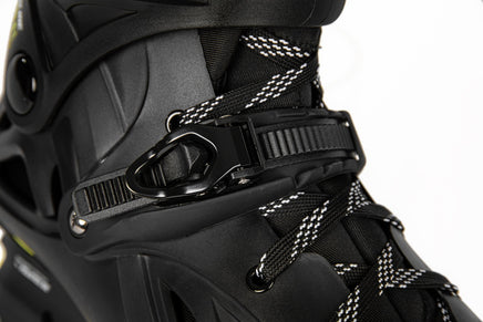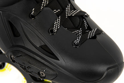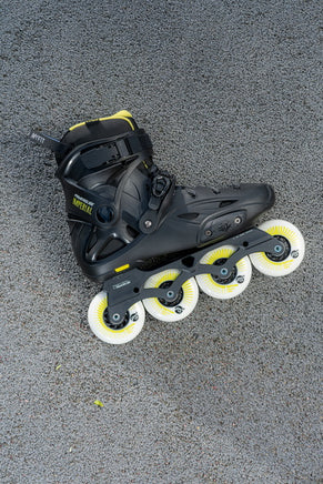 The POWERSLIDE Imperial One Black Yellow 80 is a proven, high-performance freeride skate that’s perfectly suited to exploring the urban environment. This impressive hard boot inline skate is pure fun whether you’re looking to cruise the city, pull some awesome slides, manoeuvre around obstacles, or jump over big gaps. High-performance and versatile, there’s a lot to love about the POWERSLIDE Imperial One Black Yellow 80 urban freeride skate. The boot and cuff on the Imperial Black Yellow 80 are made of light and strong glass-fibre reinforced plastic which gives skaters responsive and supportive urban freeride skate. Equipped with POWERSLIDE a Gamma 243mm aluminium casted frame, fast and grippy 80mm Hurricane wheels, and WICKED ABEC 7 bearings the Imperial offers urban freeride skaters the perfect mix of speed, durability, and control. A legendary inline skate that’s right at home in the urban environment, it’s the Imperial One Black Yellow 80.