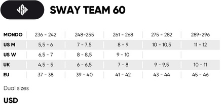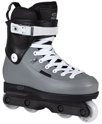 Sway Team Grey 60 When the Sway was first released, it was seen as an entry-level aggressive skate. Wow, how times have changed. The skate has become so popular among skaters of all levels, including the USD team, we had to release a team skate designed around the Sway. We’re proud to introduce the Sway Team 60. A high-quality skate at an unbelievable price point, the USD Sway Team Grey 60 offers unmatched quality and features for the price. It has a stylish grey/black colourway with contrasting white cuff buckles and laces. The new Sway Team Grey 60 is incredibly durable and supportive and comes with a slick soul plate, flat KIZER Fluid V frame setup, USD Team wheels 60mm and Wicked ABEC 7 bearings, and a comfortable USD basic liner. For the price, it’s hard to find a better aggressive skate on the market. Step into the USD Sway Team Grey 60.