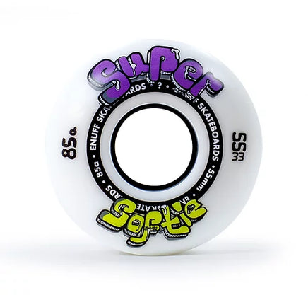 Our Enuff Super Softies Wheels are perfect for anyone looking for that smooth ride whilst still keeping the profile and size of a classic skateboard wheel. Available in 53mm, 55mm and 58mm at 85a the wheels will fit on your current set up perfectly without the need to add riser pads. The soft formula allows you to still perform tricks whilst allowing for that super smooth roll away no matter how rough the ground is.
