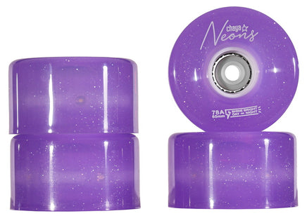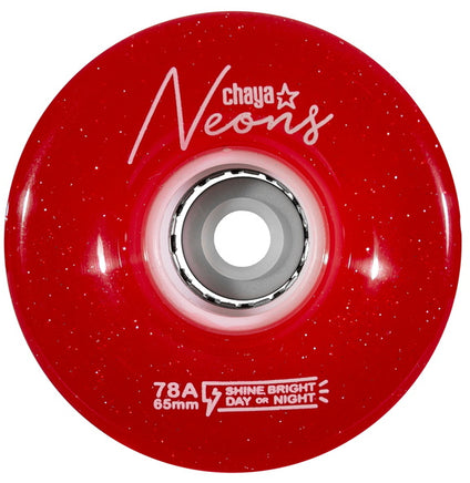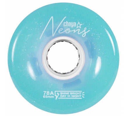 The Chaya Neons White LED outdoor quad wheel will ensure you stand out from the crowd. Built with long-lasting super high rebound polyurethane (PU) this outdoor wheel at 78A hardness is high quality, smooth rolling, and shines bright thanks to a series of white LED lights within the hub that gleam as the wheel spins. Perfect for shining bright at indoor roller discos or for evening cruising outdoors - just for fun, or to stay safe. Neons LED wheels are available in six bright shining colors - white, pink, blue, red, purple, and black.