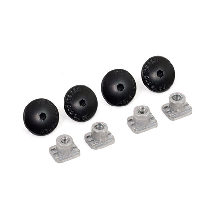Set of 4 black Echo cuff bolts and adjustable mother plates with adjuster housing to fit inside the Echo shells. This system fits the Echo skates range and allows for the unique 3-step adjustable cuff setup system.