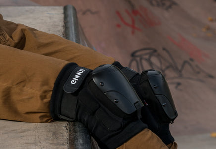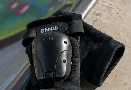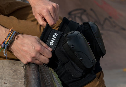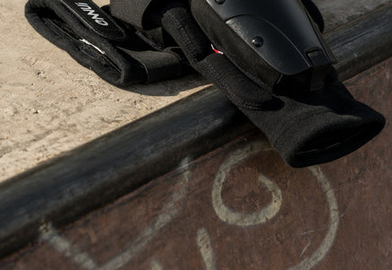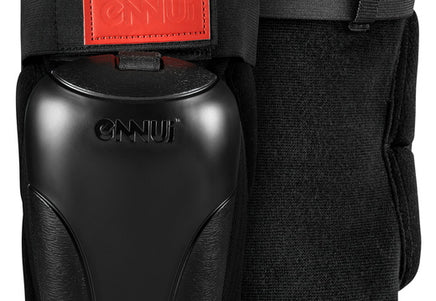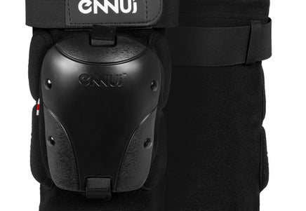 The ENNUI PARK knee gasket is another perfect piece of protective design. Light weight, perfect fitting and highly protective. The stretchable knitted cotton sleeve design provides a very pleasant fit and perfect for breathability and sweat release. The rounded shaped dual density padding adapts to your knee avoiding any slippage or movement. This paired with the ENNUI external plastic cap and side protectors delivers a great all-round protection and good slides in any situation. The top strap offers adjustable and secure fit and reduces slippage thanks to the silicon strips on top and bottom of the sleeve. The light weight construction gives a lot of freedom to move whilst remaining protected. The ENNUI Park knee gasket is perfectly suited for all action sports.