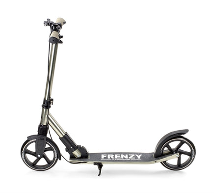 The Frenzy Dual Brake is our latest 205mm wheel model which features a dual hand and foot braking system, warning bell, front cushion suspension and our new easy fold system for compact storage and transportation. All of this is in addition to our new hard wearing premium anodised finish.