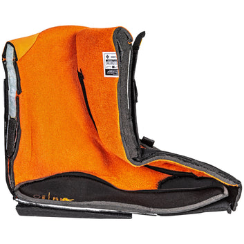 "The Crown liner is the epitome of comfort and support. The combination of memory foam & amp; microfiber lining lets your feet breathe freely whilst feeling like they’re in the clouds. With lace loops from the start of your toes to well above your ankle, you’ll be able to create a vacuum of comfort & amp; stability to which you desire. The Powerarch provides an additional wraparound layer of support, including removable inserts, to which you can adjust vertically above your ankle. A patch of double stitched suede was added to the exposed outside area to help protect it from abrasion. Also included are a memory foam insole and shock absorber. Dressed up in black with a hint of peach, this is MYFIT 4 U." - Text by Chris Farmer
