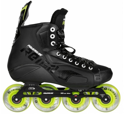 The POWERSLIDE Reign Triton 80 is the capable inline hockey skate you need when the clock is ticking down and the game is on the line. In the Reign Triton 80, POWERSLIDE gives you a lightweight boot based on a glass-fiber reinforced plastic shell, offering excellent support and a built-in Recall memory foam liner with anti-slip microfiber that’s not only comfortable but helps improve responsiveness. The POWERSLIDE Reign Triton 80 is a high-quality, versatile inline hockey skate that incorporates the 3-point TRINITY mounting system, giving you a low center of gravity that enables you to customize the frame position under your boot to perfectly suit individual skating styles. When playing inline hockey, speed and control are everything and the Reign Triton 80 comes through with the light, durable, and precise EGO SL 4x80mm frame with single axles. The stable frame rolls on POWERSLIDE Trident wheels in 80mm and WICKED ABEC 7 bearings, giving you the grip and speed you need for intense games. With the Reign Triton 80, you have all the tools need to rule the rink and score the game-winning goal.
