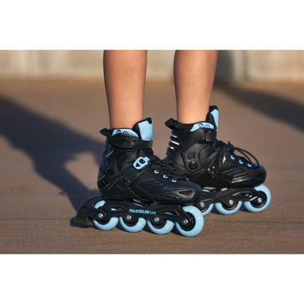 Teach your kids to inline skate the right way with POWERSLIDE’s Khaan Junior LTD Black. Designed specifically for beginners, this kids skate is stable and supportive with a range of features that help newbies build confidence and learn the foundational basics that will set them up for years of fun on inline skates. The POWERSLIDE Khaan Junior LTD Black lets kids learn to skate at their own pace with the integrated Speed Control System (SCS). This unique feature allows you to reduce the speed of the two centre wheels by turning a reel located between boot and frame. This innovative training feature allows kids to gradually build their skills and progressively learn to skate faster. We all know that kids grow quickly and the Khaan Junior LTD can easily expand to grow as your child does. This versatile kids skate can adjust to four different sizes, so you know your little roller will have a capable, well-fitting inline skate for multiple seasons. Complete with POWERSLIDE Wheels and ABEC 5 bearings, the Khaan Junior LTD Black gives beginners all the tools they need for years of fun on inline skates.