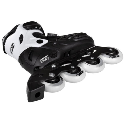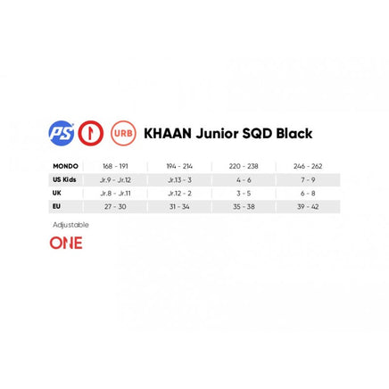 Be the local skate hero with the Powerslide One Khaan Junior SQD skate! This sturdy hard shell all round skate is screaming for action and wants to be used and abused! Have fun cruising with your friends or play hockey, try first freestyle moves or learn easy tricks in the skate park. The skate is very durable and provides superior support. The frame of this 4-size adjustable kids skate can be shifted side to side to offer a better stay and balance on the skates which in the end helps to lean to skate faster and easier. The Khaan Junior SQD is equipped with Wicked ABEC 7 bearings and Powerslide Hurricane PU-wheels. Fun and action is guaranteed with this cool looking black and white Khaan Junior SQD skate from Powerslide.
