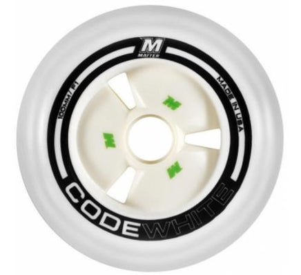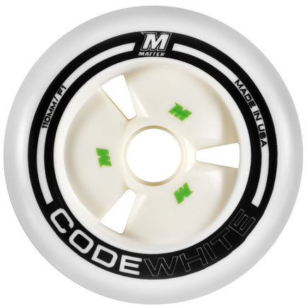 Matter’s Code White wheel is the go to wheel for tricky and difficult conditions. Designed with a primary focus on grip performance. Using Matter’s leading PU technology this wheel has taken many skaters to the top of the podium in major championships around the world thanks to its unrivaled grip and control. Perfect for track racing, or slippery indoor tracks.