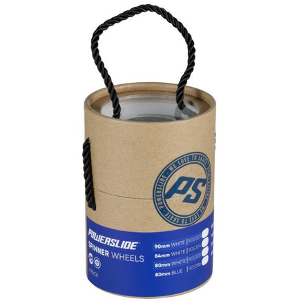 Powerslide Spinner wheels - The best money for value freeskate wheel Powerslide Spinner wheels are without a doubt the best choice for freeskaters looking for that high performance wheel at a moderate price. The urethane offers you all you need - a fast and easy roll, great grip and a long lifespan. Freeskate wheels endure extreme pressures during slides, jumps and stair rides, particularly when the entire body weight is concentrated on a single wheel. In order to withstand the high forces the core of Spinner is made of very durable glass-fiber reinforced composite material. This wheel comes in 80mm / 88A and matt white PU.