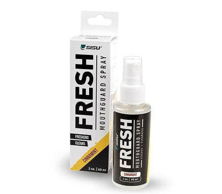 SISU® Mouthguards are the safest, thinnest, and most comfortable mouthguards on the planet. However, no mouthguard will freshen your breath. That's why we invented SISU FRESH Mouthguard Spray! This rejuvenating cinnamon and mint flavoured spray is applied directly to the mouthguard before use, leaving a taste as sweet as victory itself. To clean after use, rinse, spray, and store the mouthguard once it is dry.