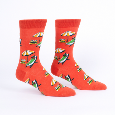 Chill out with laid-back chili peppers reading under umbrellas. Bonus: “Gone Mild” message on the soles.