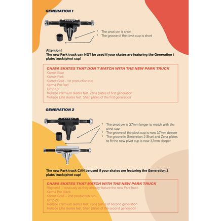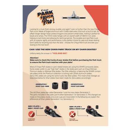 The Chaya Pro Park Truck is a high quality truck designed specifically for park and street skating and can be used with your favourite CHAYA Park Skates offering great durability, agile turns and smooth grinds. The Chaya Pro Park Truck is made of highest-grade forged aluminium material including durable CroMo steel axles. The 2,8" / 72mm wide hangers offer agile turns and great manoeuvrability on bowls and on ramps, while the unique offset hanger design adds additional protection for the kingpins, and increase the durability while clearing wheel bite. With an overall width of 138mm, the Chaya Pro Park Truck is helping to lock tricks and allowing for technical grinds. Designed and tested by Ragnaroll and the Chaya Pro Team.