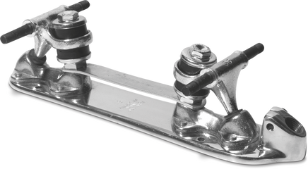 The Century plate is an artistic plate designed to be strong and agile, a perfect plate for beginners or intermediate skaters that are accustom to a standard 10 degree double action skate. Forged aluminum plate, cast trucks and hangers make this plate strong and affordable. Offset toe stop design allows the skater to push off more efficiently and consistent then with a standard straight toe stop design. Made in the USA!