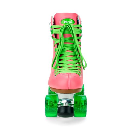 With the Beach Bunny line, classic Moxi fashion has never been more affordable! The Beach Bunny features a traditional high top boot with thoughtful touches including drum-dyed vinyl uppers for more authentic colour saturation and additional ankle padding that provides comfort and security whether you’re cruising down the boulevard or ripping up your favourite skate park. Bright laces that shine in the sun add to the fashion-forward design of the Beach Bunny, and the moisture-wicking Dri-Lex™ liner is printed with a custom pattern that was designed from scratch by Moxi team members for a skate that is 100% Moxi, inside and out. Complete with glittery high rebound urethane outdoor wheels and a pair of matching toe caps, the Beach Bunny is ready to accompany you on your next adventure!