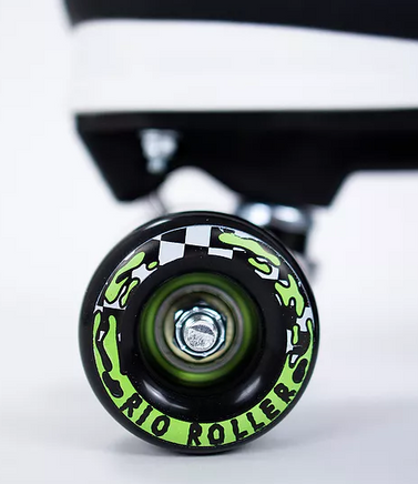 Staying true to the classic design of our most loved skate, Mayhem, the roller derby style skate has been given the ultimate makeover! Inspired by 90’s skate scene, Mayhem II chequered design meets vibrant colour contrasts in the form of slime, which is present in the unique wheel print. Mayhem II also includes the iconic Rio signature print along the side plus the added detail of contrasting eyelets to balance the coloured design of the wheels.