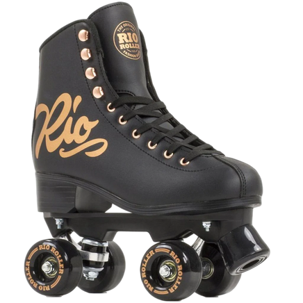 We’ve taken the popular script design and sprinkled a touch of elegance by introducing a beautiful rose gold effect. Taking inspiration from the traditional figure skates, we kept the colour pallet classic with black and cream, which really makes the rose gold pop! These skates make us super excited to hit the roller disco and dance around with retro moves!