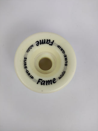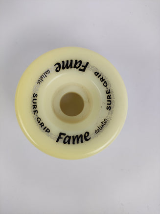 The same wheel that’s on the Fame skate Package. A great artistic wheel for the beginner skater. Wheel is made out of urethane so expect more grip than a clay wheel.