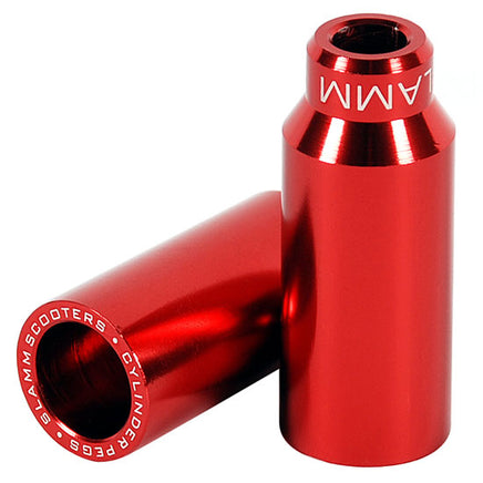 Ultra-tough Slamm Cylinder stunt pegs supplied in pairs (for front and rear) with 4 axle bolts varying in length, designed to fit a selection of deck widths.