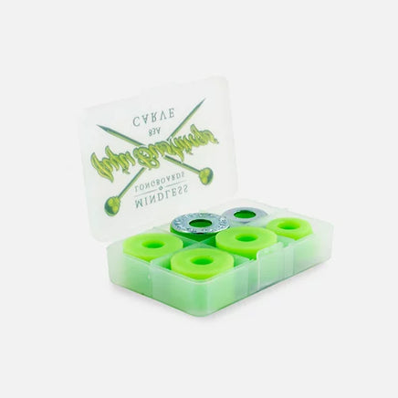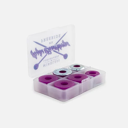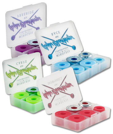 Juju bushings are made using our custom Mojo urethane and are available in four duros; Carve (Green), Freeride (Purple), Race (Blue), Downhill (Red)