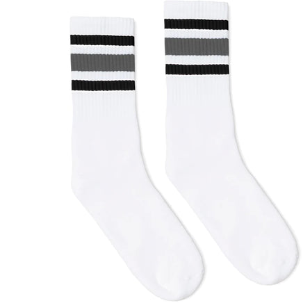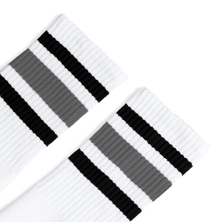 SOCCO Black & Grey Striped | White Mid Socks