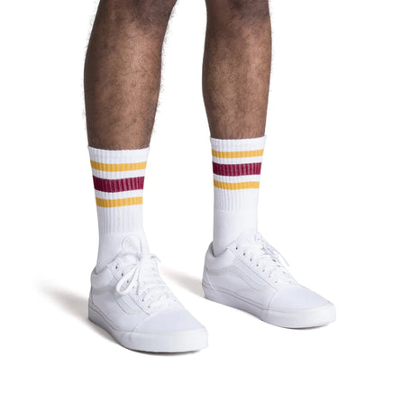 American made transcendent styles, infused with modern tech, take groovy to a whole new level. SOCCO has upgraded the classic three stripe athletic tube socks of the 1970’s and 80’s to super cushiony cotton, moisture wicking polyester and a built-in functional heel for all day comfort whether on the streets, field or court.