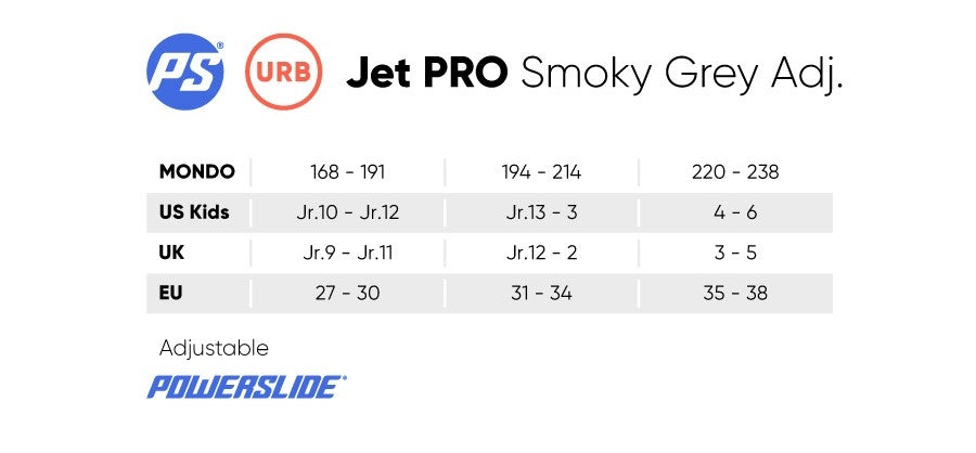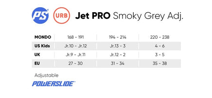 The Powerslide Jet PDS Smokey Grey is a premium kids urban skate featuring a rugged dual-injection hardboot, easy-entry PDS closure system, aluminum frame, Spinner wheels, and ABEC 9 bearings for performance and independence.